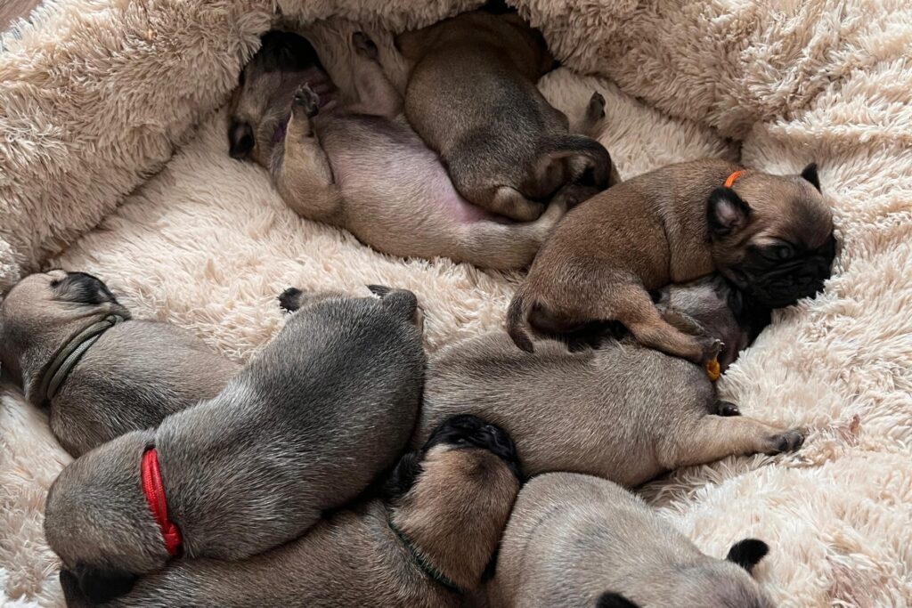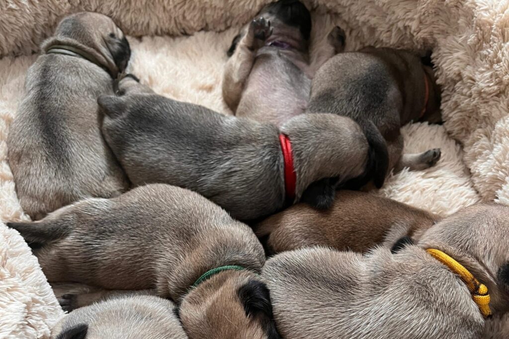 Am 20. Mai 2024 war es endlich so weit: Unsere liebe Rosa hat uns mit 8 gesunden altdeutschen Mops-Welpen beschenkt! Die kleinen Racker wuseln seitdem durch unser Zuhause und bringen uns jeden Tag zum Lachen. Ja, ihr habt richtig gelesen – wir haben jetzt ein kleines Mops-Festival in unserem Wohnzimmer!
