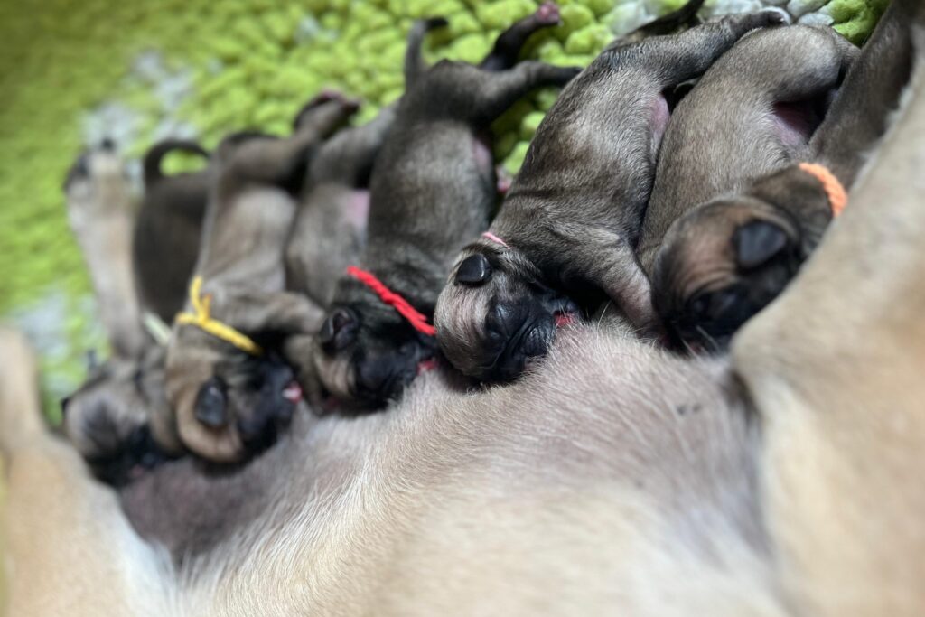 Wir sind voller Vorfreude und mitten in den Vorbereitungen für den ersten Wurf unserer Ophelia, den wir für Herbst/Winter 2024 erwarten. Bei diesem besonderen Wurf könnten Welpen in den Farben Beige und Schwarz dabei sein – eine aufregende Mischung! Der stolze Papa ist ein wunderschöner, beige farbener Mopsrüde mit einem fantastischen Charakter, und wir können es kaum erwarten, zu sehen, welche tollen Eigenschaften die Welpen von ihm erben werden.